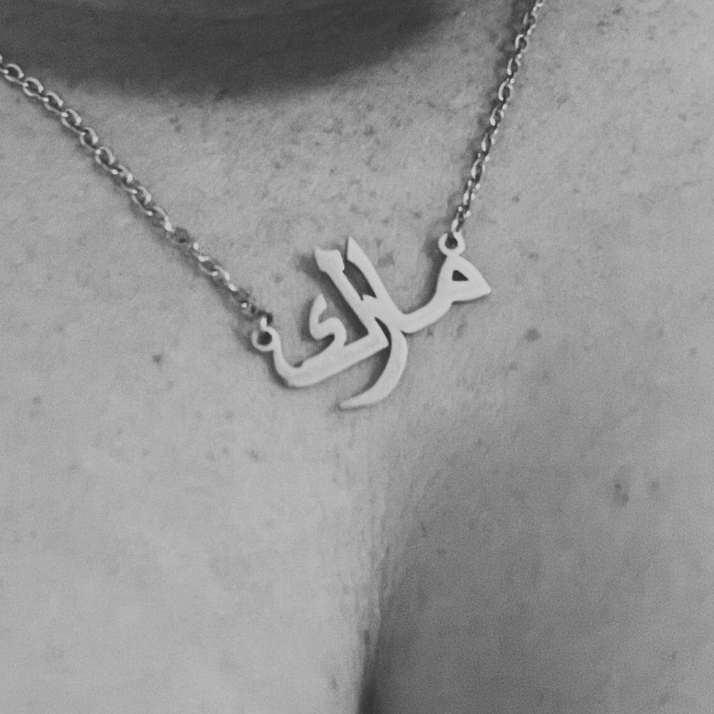 Just one more day until I get to see you again! I’m so excited for tomorrow. We talked a little this morning and I shared that a necklace I ordered came today. It’s your name in Arabic.